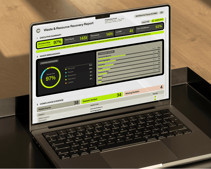 That make compliance slow, reporting inconsistent and outcomes hard to prove. Circlar replaces fragmented workflows with a single, site-ready system to plan, track and report waste.